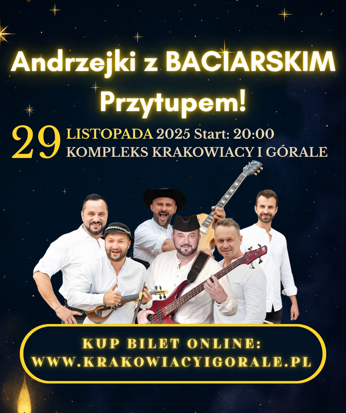Już 29 listopada zapraszamy Was na wyjątkowe Andrzejki z BACIARSKIM Przytupem – pełne magii, regionalnych smaków i muzyki na żywo!